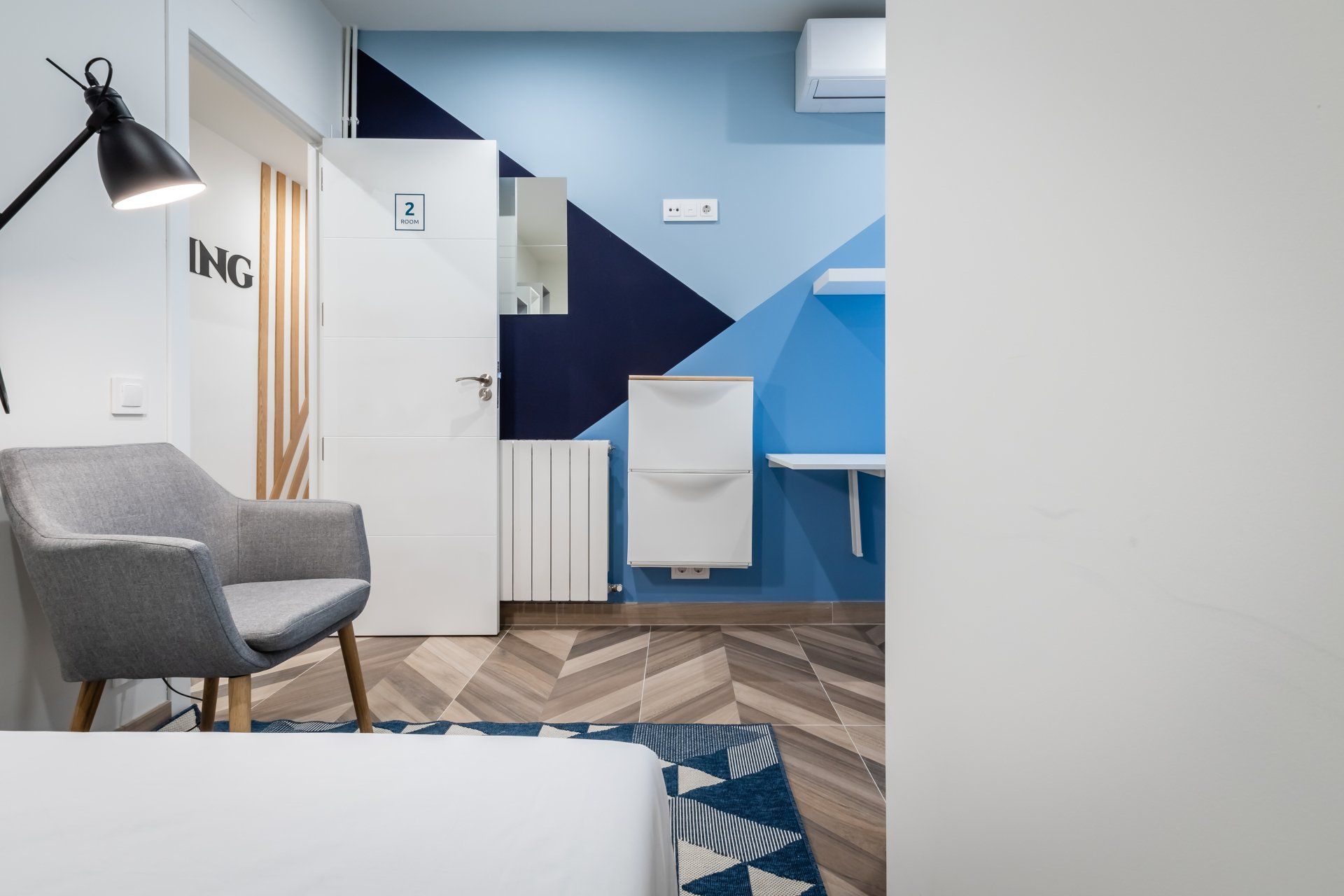 Esta magnifica habitación es bastante amplia, con un extra de frescura debido a sus tonos blancos, y cuenta con un ventanal semitransparente que aporta mucha claridad. Aquí tendrás todo lo adecuado para tu estancia en Barcelona, lo cual la hace perfecta para estudiantes o jóvenes profesionales. En la habitación tendrás un espacio “Dream” con una cama doble perfecta para descansar después de una larga jornada de trabajo o estudio; un espacio de “Grow”, el ideal para que produzcas y generes muchas nuevas ideas y proyectos pues contaras con dos escritorios abatibles y su correspondiente silla. Finalmente encontrarás el espacio “Store”, donde tendrás los muebles necesarios para acomodar todas tus pertenencias y guardes todos esos planes exitosos que quieres lograr.