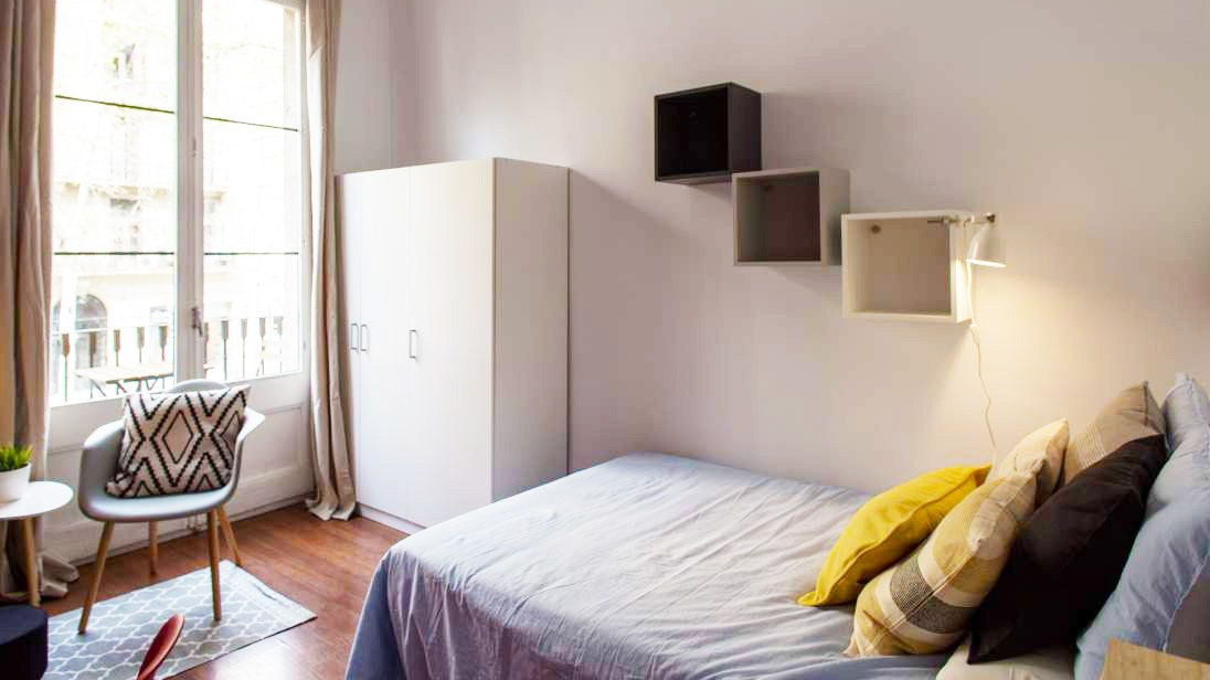 ¿Te gusta vivir en el centro de Barcelona? ¡Esta es la mejor oportunidad que tienes! Comparte con nosotros y vivirás una de tus mejores experiencias. Además, de tener una excelente ubicación, se caracteriza por un espacioso apartamento renovado con un proyecto de interiorismo y diseño de estilo moderno; perfecto para jóvenes como tú, profesionales o estudiantes. Verás al hacer este recorrido un amplio salón con TV para pasar esos domingos viendo un clásico de fútbol con unas cervezas y bocadillos o en el peor de los casos viendo una película y pidiendo una deliciosas alitas de Coco Vail. Sigues caminando un poco más y te toparás con la enorme y super fresca terraza interior que tiene el apartamento, perfecta para relajarse con un refresco, un café o un buen libro, o también con un BBQ con los compis de piso. El departamento cuenta con 6 habitaciones decoradas de una manera muy auténtica y delicada para que te sientas como en casa. También cuenta con una amplia cocina totalmente equipada con todo lo necesario para que la conviertas en toda una cocina “Michelin ⭑”. Dos baños completos con regadera, por lo que hay un baño por cada 3 habitaciones. Y recordar que obtendrás la limpieza de áreas comunes semanalmente. Por su céntrica ubicación en una de las mejores zonas de la ciudad, a tan solo unos pasos, tienes la famosa Plaza Cataluña, por lo que no tenemos ninguna duda de que este apartamento te va a encantar.