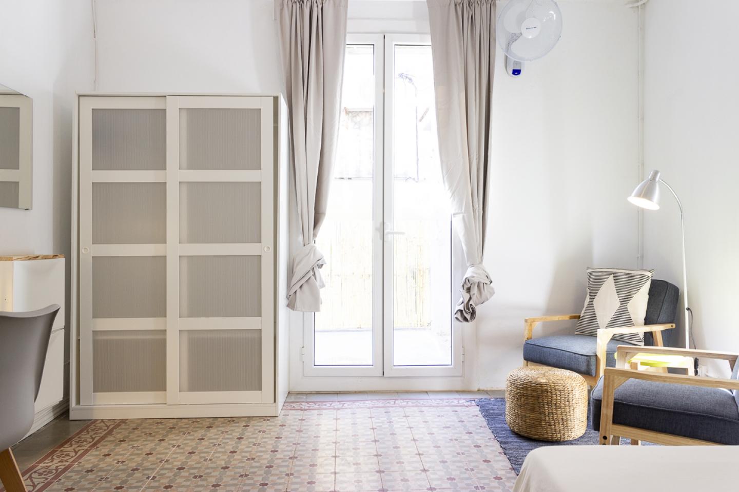 ¿Estás en búsqueda de un lugar luminoso? te encantará nuestro apartamento. Este apartamento de diseño, moderno y recién reformado tiene un extra de luz ya que se encuentra en la última planta del edificio. El apartamento tiene 5 estilosas habitaciones, pues cada una tiene un diseño original y dos de ellas con terraza privada; Todo completamente equipado con todo lo ideal para vivir y enfocarte en tus proyectos personales o relajarte y disfrutar de tu estancia en Barcelona. El piso cuenta con 2 baños completos, distribuidos de tal manera que todos los socios de piso no tengan problemas a la hora de utilizarlos. Después de seguir este recorrido llegaras a una área con TV y sofá donde todos los compañeros pueden disfrutar y hacer una tarde o noche entretenida y diferente. La cocina está totalmente equipada y con estilo americano para que prepares tus mejores platos y saques a relucir tu “chef” interior. Ya que es abierta y conecta con el comedor, lo que le da un aspecto moderno y a la espera de tus mejores platos. También tendrás todo para que mantengas todas tu cosas impecables y sin esperar tantas horas, pues encontrarás una zona espectacular de lavado y secado. Recuerda que una vez a la semana, el apartamento dispone de un servicio de limpieza de las zonas comunes, por lo que tendrás una mejor convivencia con tus compañeros.