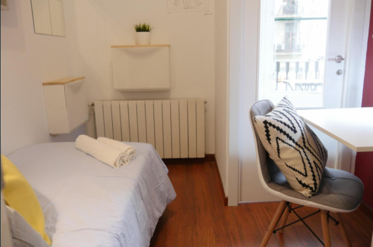 ¡Esta fantástica habitación te ayudará a disfrutar de la experiencia de compartir piso en Barcelona! La habitación cuenta con una zona de descanso con cama individual, una zona de estudio con escritorio, y una zona de almacenamiento con un armario para guardar todas tus pertenencias. Además, la habitación está equipada con ventilador y radiador, con los que podrás mantener la temperatura de la habitación a tu gusto. Además, también podrás acceder a todas las demás zonas comunes de las que dispone este piso, como la enorme terraza en la que podrás disfrutar del sol de Barcelona. Esta habitación tiene todo lo necesario para tu estancia en Barcelona y es perfecta para estudiantes o jóvenes profesionales.