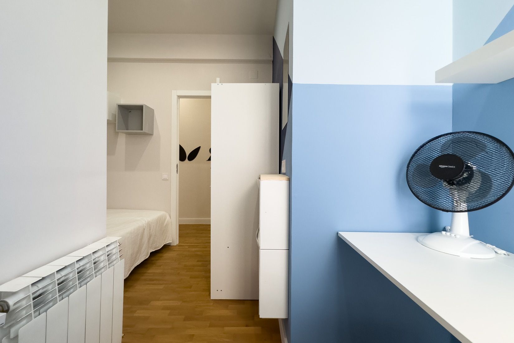 ¡Esta habitación es una opción ideal si quieres compartir piso y conocer gente nueva! La habitación cuenta con una zona de descanso con cama doble, una zona de estudio con escritorio, y una zona de almacenamiento con un armario para guardar todas tus pertenencias. Además, la habitación está equipada con ventilador y radiador, con los que podrás mantener la temperatura de la habitación a tu gusto. Además, también podrás acceder a todas las demás zonas comunes de las que dispone este piso, como la enorme terraza a la que puedes acceder desde el salón. Esta habitación tiene todo lo necesario para tu estancia en Barcelona y es perfecta para estudiantes o jóvenes profesionales.