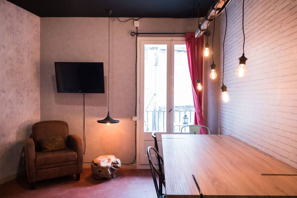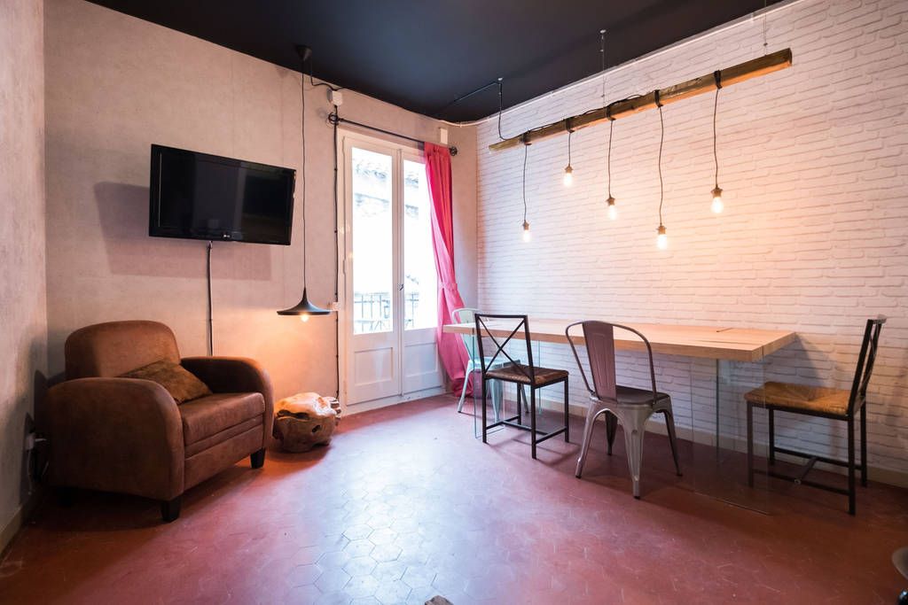 Un piso en pleno corazón de Barcelona y vive una experiencia inolvidable. Este estupendo y espacioso piso con una ubicación inmejorable fue renovado con un proyecto de interiorismo y diseño en estilo vintage e industrial; perfecto para jóvenes profesionales, estudiantes de maestría o doctorado. Al entrar verás de frente la entrada de la cocina, la cual está completamente equipada con todo lo que sueñas y necesitas para la creación de esas recetas favoritas o hacer una una prueba con todos tus compis de piso y prueben comida del país de origen de cada uno. luego de dar unos pasos te encontrarás con un espacioso salón de estar con sofá y TV para pasar esos domingos entre compis viendo las mejores series o tal vez mirando un clásico del fútbol español Barça vs Real Madrid, con unas cañas y olivitas del mediterráneo. Cabe mencionar su hermoso comedor, el cual es bastante robusto y de madera que hace juego perfecto con el diseño del piso. Lo más increíble de este piso es que todas sus habitaciones poseen balcón, en el caso de que quieran algo más privado para tomar el sol o tener un poco de aire fresco podrán hacer uso del patio interior que además de dejar entrar la luz al piso sirve como tendedero de la ropa. Tendrás 2 baños completos, algo muy importante para que no tengas que esperar en el caso de que tengas una urgencia o llegues a tu cita a tiempo. Para finalizar recuerda la ubicación tan céntrica, en una de las zonas más vibrantes de la ciudad, ya que a menos de 2 minutos caminando, tienes la famosa Rambla de Barcelona, por ello no tenemos duda que este apartamento te va a encantar.