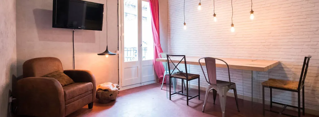 Un piso en pleno corazón de Barcelona y vive una experiencia inolvidable. Este estupendo y espacioso piso con una ubicación inmejorable fue renovado con un proyecto de interiorismo y diseño en estilo vintage e industrial; perfecto para jóvenes profesionales, estudiantes de maestría o doctorado. Al entrar verás de frente la entrada de la cocina, la cual está completamente equipada con todo lo que sueñas y necesitas para la creación de esas recetas favoritas o hacer una una prueba con todos tus compis de piso y prueben comida del país de origen de cada uno. luego de dar unos pasos te encontrarás con un espacioso salón de estar con sofá y TV para pasar esos domingos entre compis viendo las mejores series o tal vez mirando un clásico del fútbol español Barça vs Real Madrid, con unas cañas y olivitas del mediterráneo. Cabe mencionar su hermoso comedor, el cual es bastante robusto y de madera que hace juego perfecto con el diseño del piso. Lo más increíble de este piso es que todas sus habitaciones poseen balcón, en el caso de que quieran algo más privado para tomar el sol o tener un poco de aire fresco podrán hacer uso del patio interior que además de dejar entrar la luz al piso sirve como tendedero de la ropa. Tendrás 2 baños completos, algo muy importante para que no tengas que esperar en el caso de que tengas una urgencia o llegues a tu cita a tiempo. Para finalizar recuerda la ubicación tan céntrica, en una de las zonas más vibrantes de la ciudad, ya que a menos de 2 minutos caminando, tienes la famosa Rambla de Barcelona, por ello no tenemos duda que este apartamento te va a encantar.